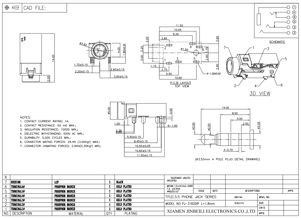 Xiamen Jinbeili Electronicsl Co.,ltd specializes in the manufacture of connector parts, DC jack connectors and switches. The main products are computer high-speed USB connectors, tact switches, toggle switches, pushbutton switches, headphone sockets, power sockets, etc.