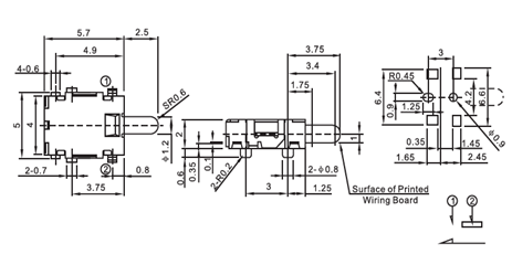Popis z tohomikrospínač pravoúhlý SMT typ DT-025Mikrospínač s DC12V 50mA, provozní síla 45gf, životnost 100 000 cyklů