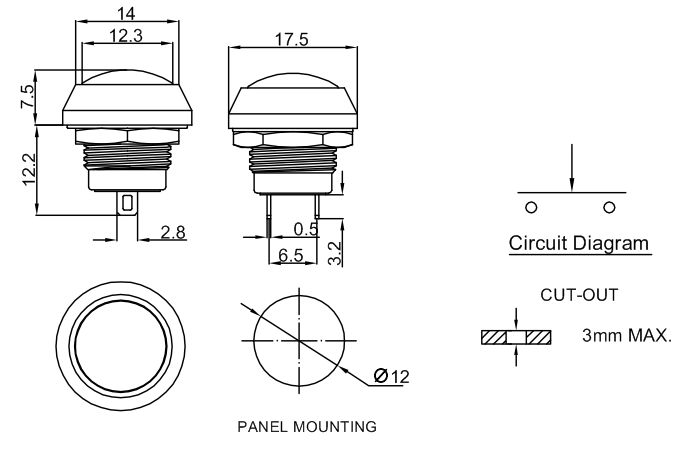 Nuestro serviciode estaPBM12 11M RU NNN A6 S Pulsador metálico SPST OD12 mm con bloqueo o sin bloqueo