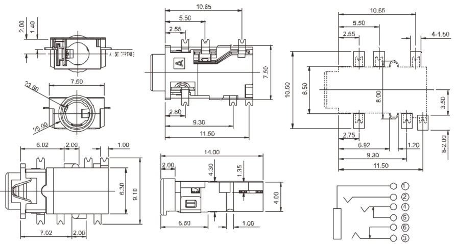 A mi gyárunkebbőlPJ-3160C 3,5 mm-es audio aljzat 6 tűs derékszögű SMT típusú