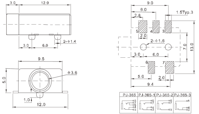 Leírás ebbőlPJ-365 3,5 mm-es audio aljzat 5 tűs derékszögű SMT típusú3,5 mm-es audioaljzat 5 tűs SMT típusú, DC 30V 0,5A, 5000 ciklus élettartama
