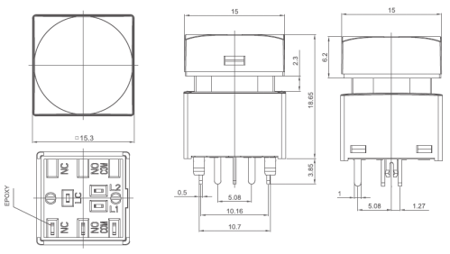 Leírás ebbőlPLB-N1PRN-ATW Nyomógombos kapcsoló LED-del, nem zárhatóPLB-N1PRN-ATW Nyomógombos kapcsoló LED-del, DC 28V 0,4A, nem zárható, 200 000 ciklus élettartam, SPDT MOM SQ CLR LENS ULP12OAP1RSSCL1RGB