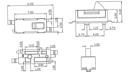 Leírás ebbőlSMT típusú mikrokapcsoló 2 sorkapcsos DS-1109Mikrokapcsoló DC12V 50mA besorolással, 45gf üzemi erővel, 100 000 ciklus élettartammal