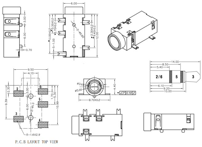 פָּרָמֶטֶר של זהPJ-327A 3.5mm שקע שמע מסוג SMT 5 פינים בזווית ישרה