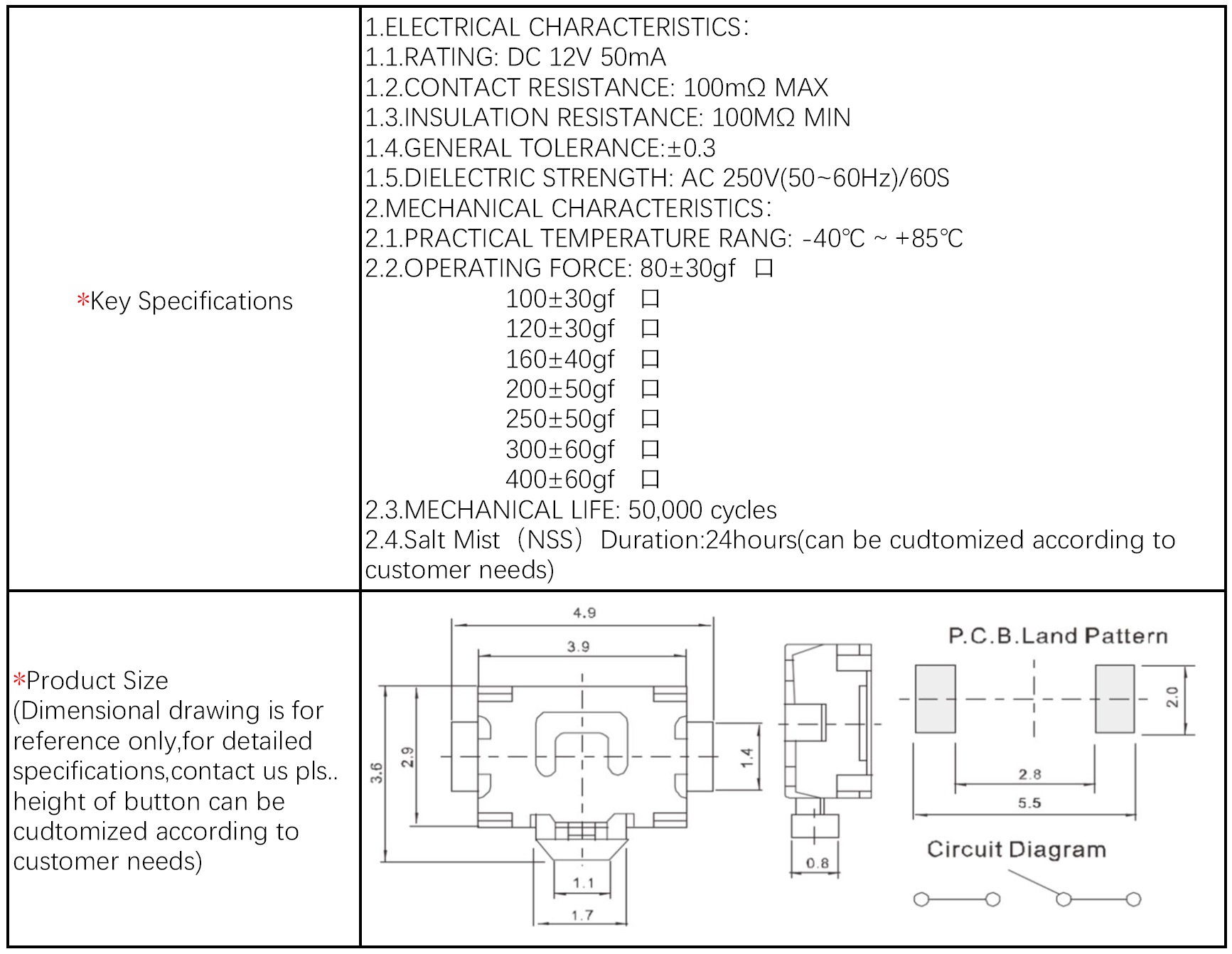 פָּרָמֶטֶר של זהמתג מישוש TS 1186E