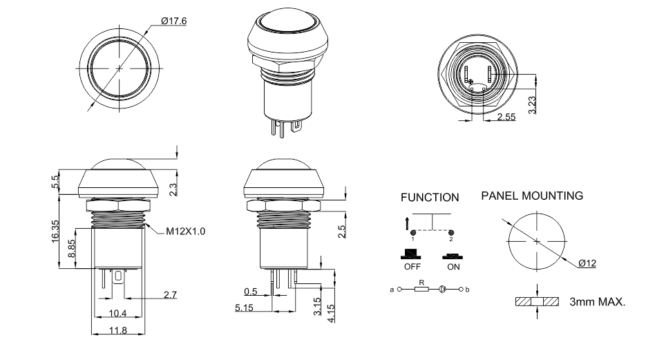 説明 これのPBM12 11Z RS NN3 S0 S 金属製押ボタンスイッチ SPST OD12mm ロック付・ノンロック付PBM12-11Z-RS-NN3-S0-S 金属製押しボタン スイッチ SPST、OD12 mm ロックまたは LED 付き非ロック、200,000 サイクルの動作寿命