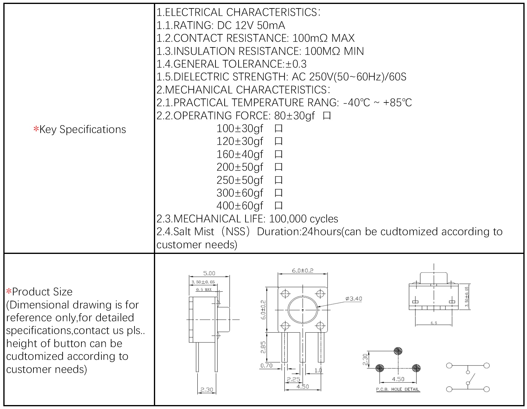 설명 이의TC 00104B 3개의 단자가 있는 촉각 스위치 직각 DIP 유형TC-00104B 촉각 스위치 직각 DIP 유형 3 단자, DC 12V 0.05A, 100,000 사이클 작동 수명 테스트.
