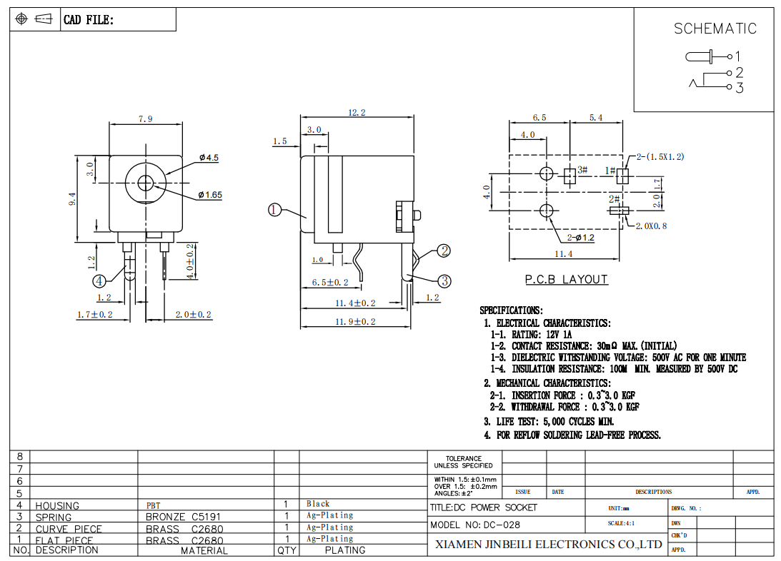 DC-098-0.75 Power Barrel Connector Jack 2.55mm ...