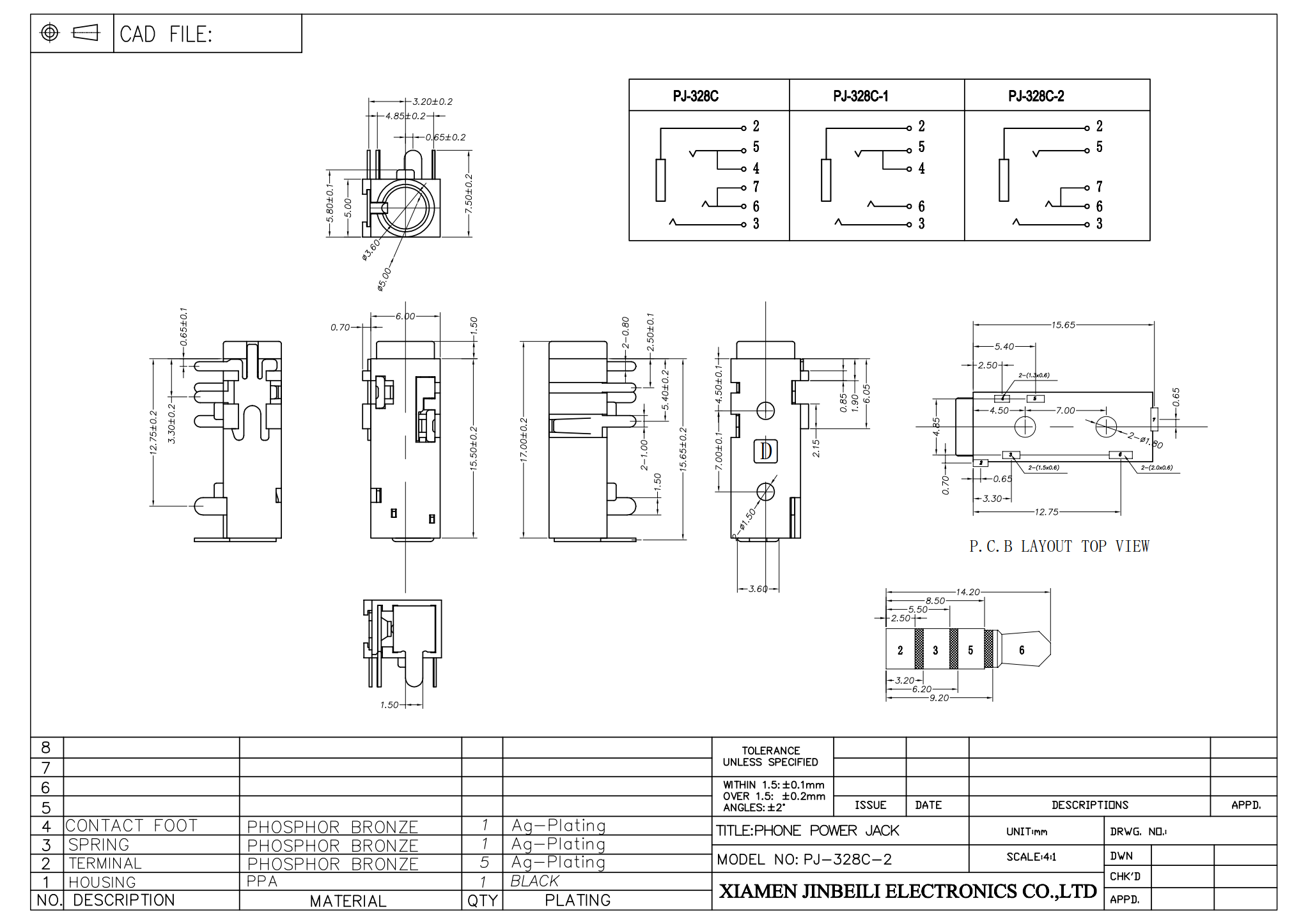 Factory PJ-328C-2 Audio Phone case Jack 5pin Mount DIP Type Phone Jack Headphone Socket