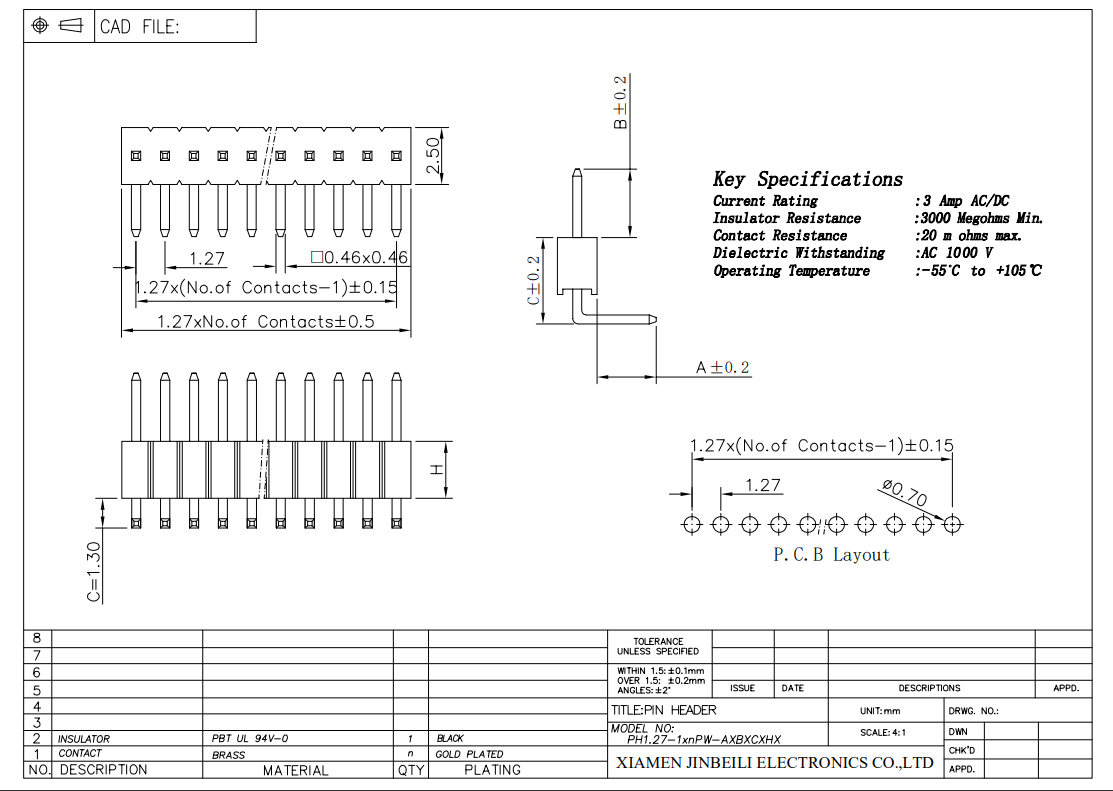 PH1.27 PIN HEADER DOUBLE ROWS THROUGH HOLE VER...