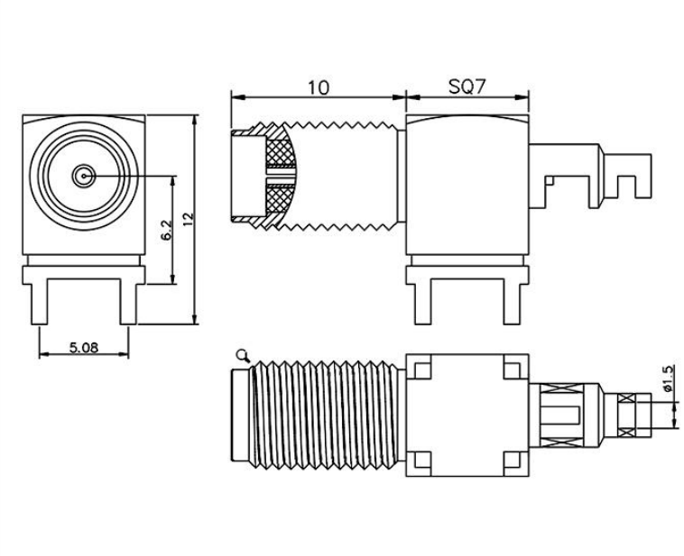 SMA-C-KWE-677-H12X17-1.5-249A SMA Female Connector Right Angle