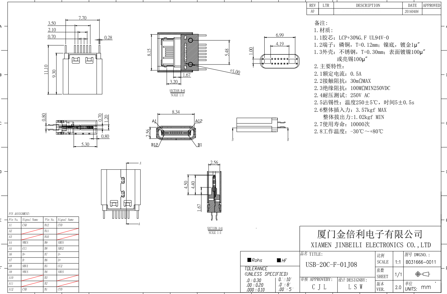 USB-20C-F-01H5.9 USB Type C Jack 16Pin H5.9mm