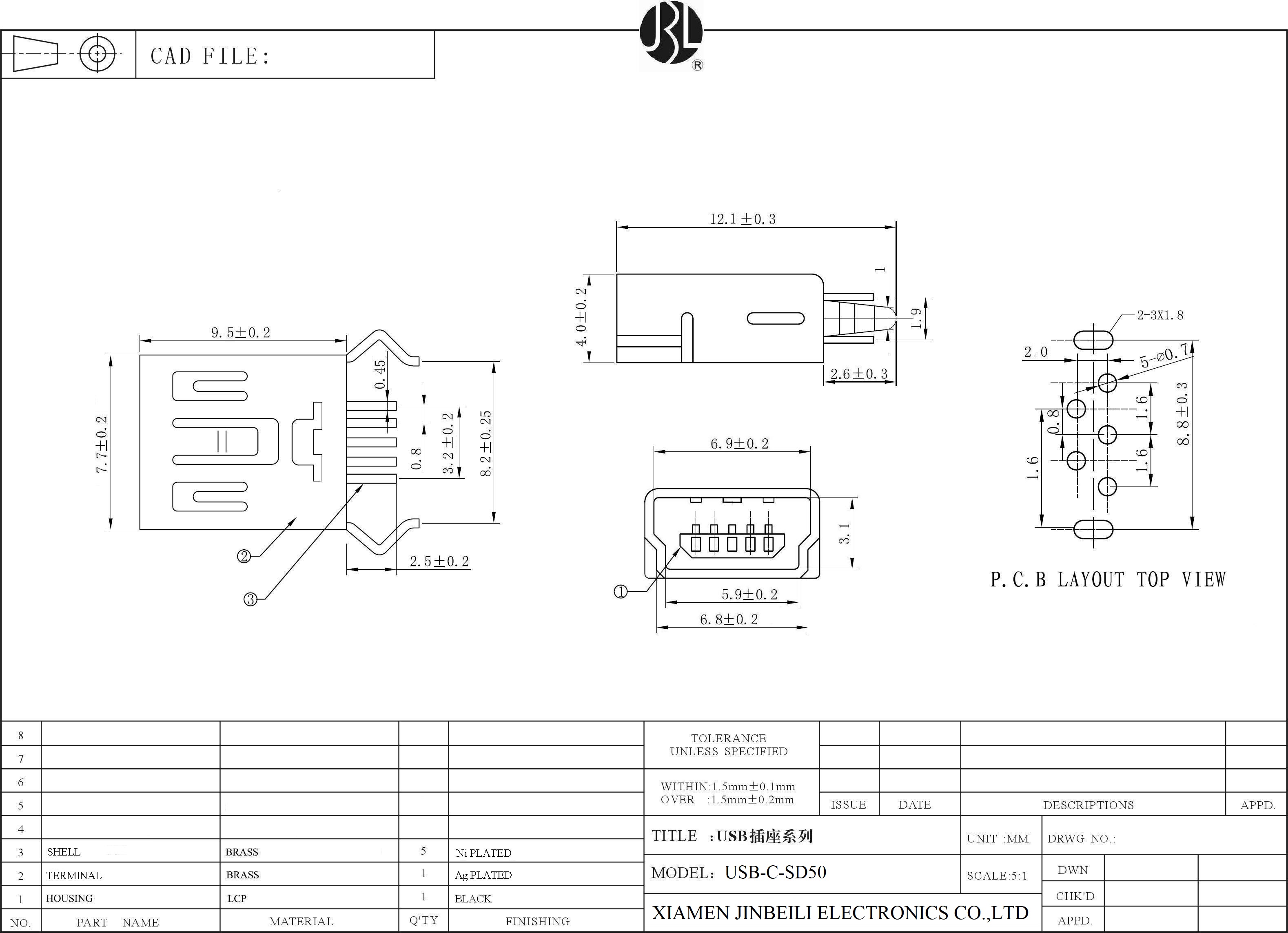 USB-C-SD50 Mini USB Type B Jack Through Hole