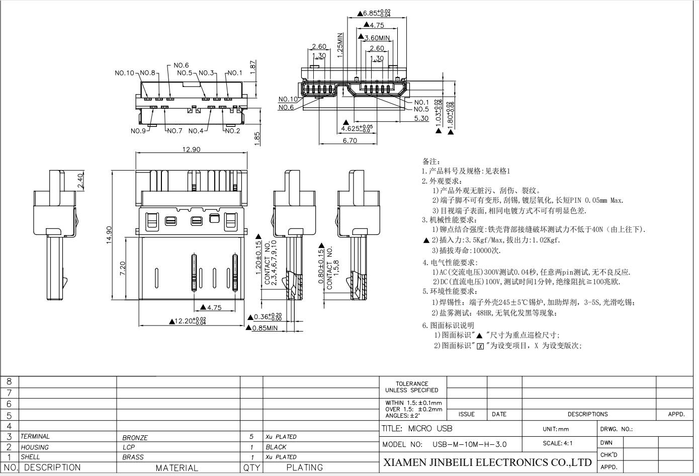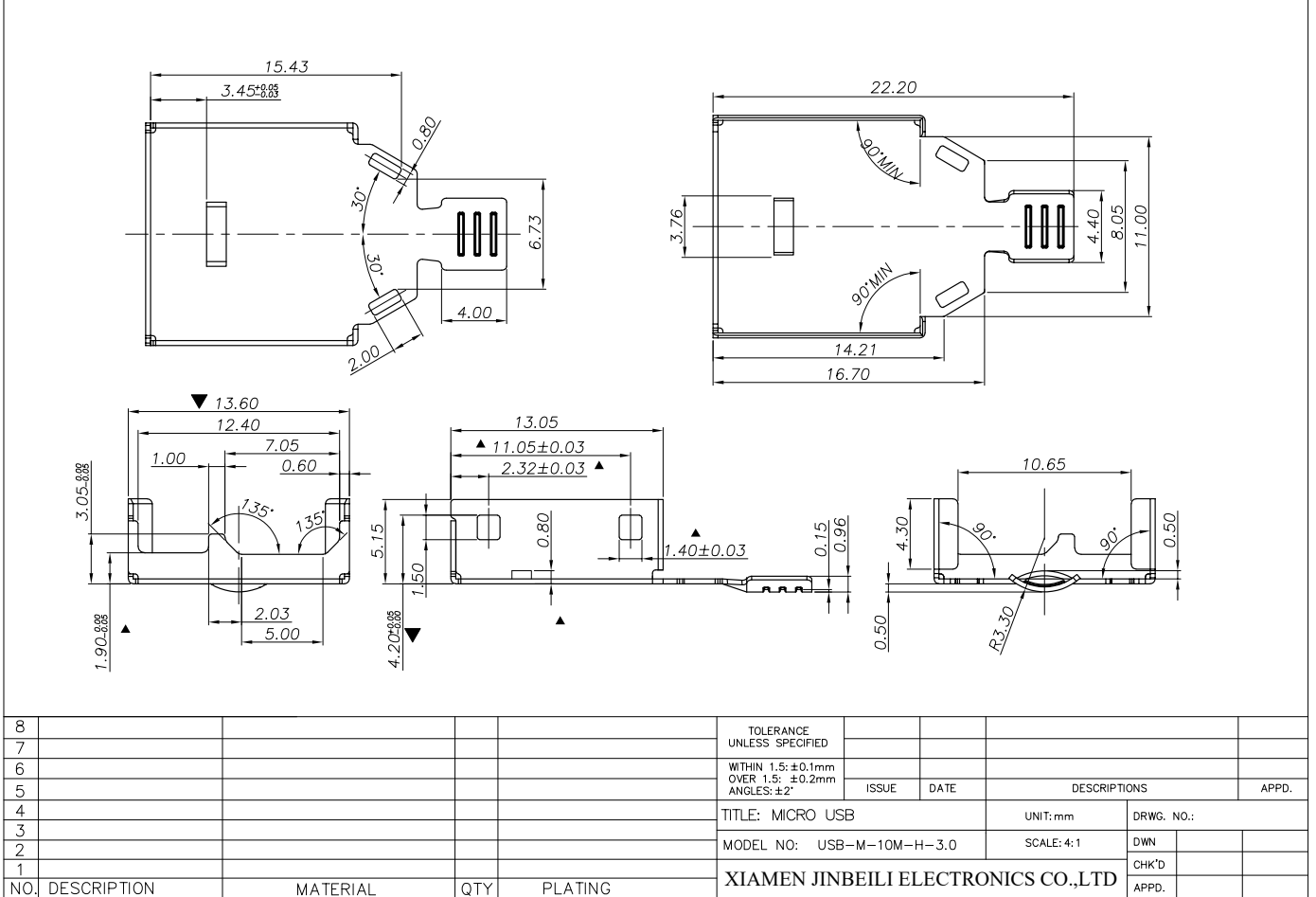 USB-M-PM10 Micro USB 2.0 Jack SMD Right Angle