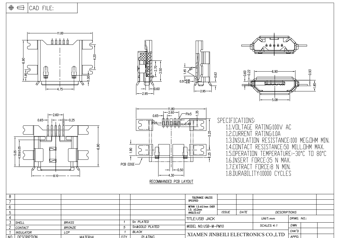 USB-M-PM10 Micro USB 2.0 Jack SMD Right Angle