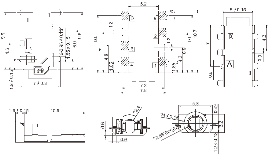 Descrição distoPJ-242C1 tipo offset de soquete de áudio de 2,5 mmConector de telefone de 2,5 mm com força de inserção e retirada de 3 a 30N, tipo de deslocamento 6PIN SMTParâmetro distoPJ-242C1 tipo offset de soquete de áudio de 2,5 mm